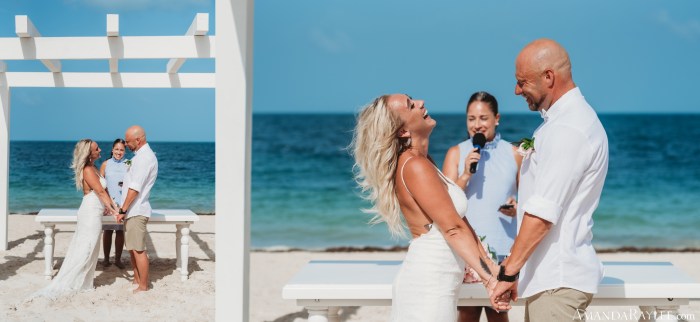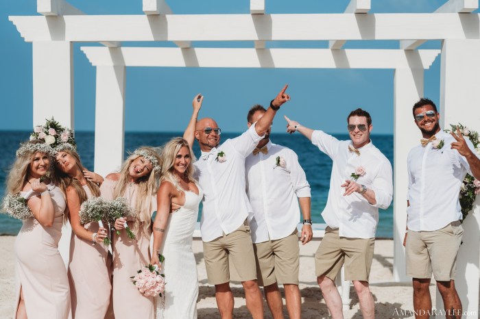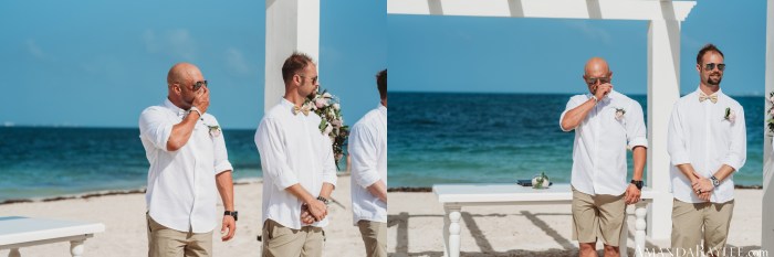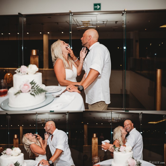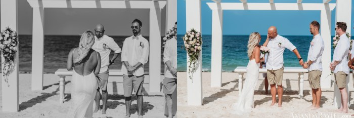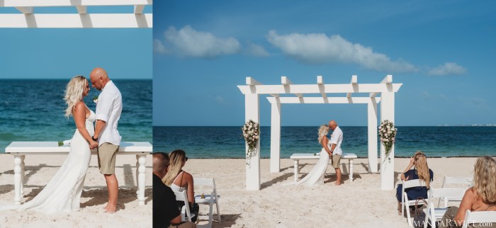Finally it’s time for the wedding! Prep in the bridal suit then prep in the grooms suite. Golf cart to the ceremony, pause for rain, and here we go. Until you’ve seen a beach with bleach white sand and water so blue it rivals our bluebonnets it’s hard to imagine it. I couldn’t have chosen a better ceremony location. There were crowds of people watching from the water and all along the beach side but it didn’t seem to bother our sweet bride and groom. There was plenty of laughter, tears, and a little making out. It was perfect. Afterwards there was a lively celebration, drinks flowing, and cake smashing of course. All in all, the best day ever mixed with the best vacation ever.