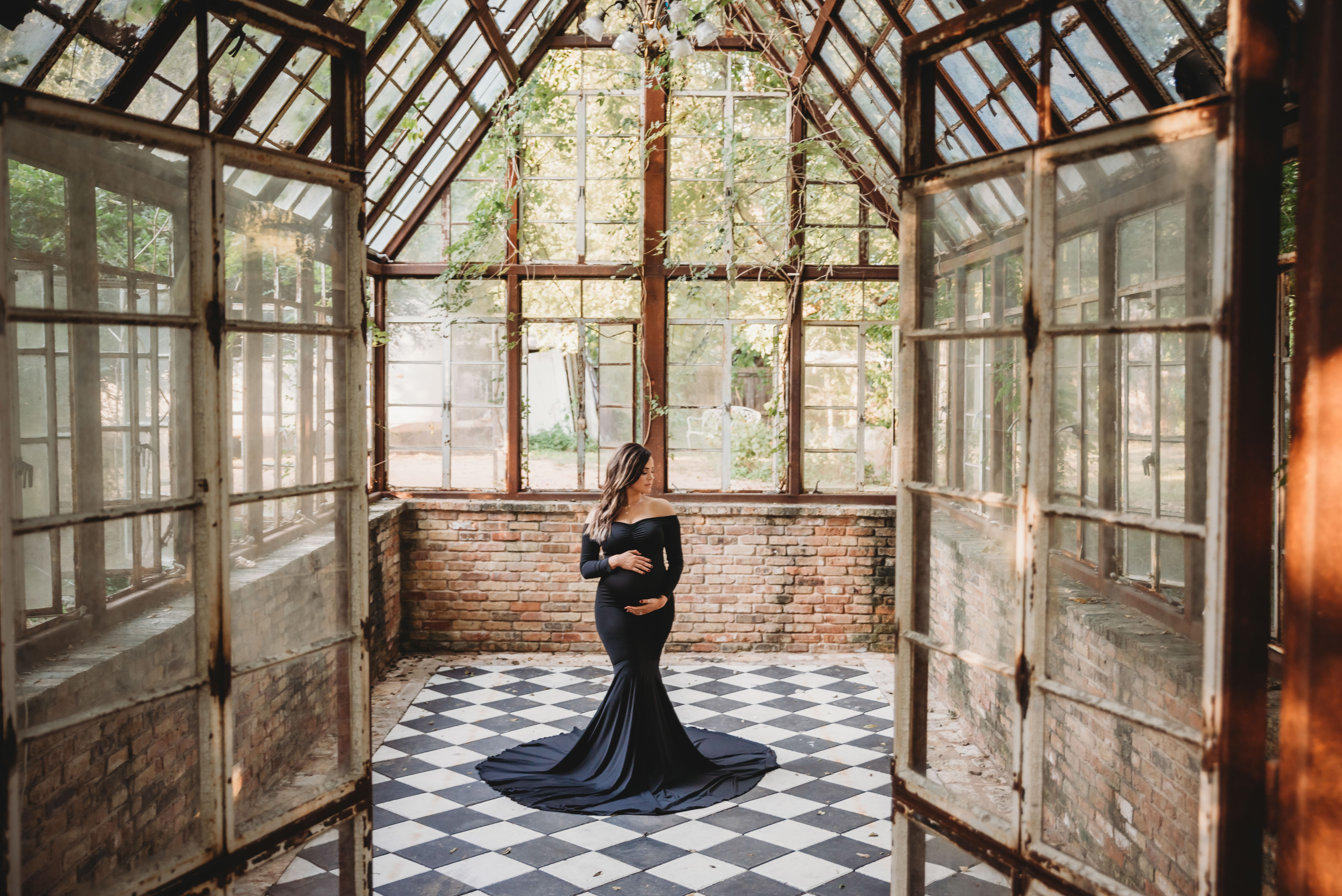 Natalie is wearing a gown from my client closet. She chose to wear the black dress from my client closet, this form fitting gown fit in with the Sekrit Theatre so well. When you book a session with me you have full access to my client closet. The closet has a wide variety of gowns, over 30 and counting! I love providing this as an option to my clients, it can help make the planning process simple and smooth. My goal is to make the process from booking to image delivery as seamless and fun as possible for my clients!