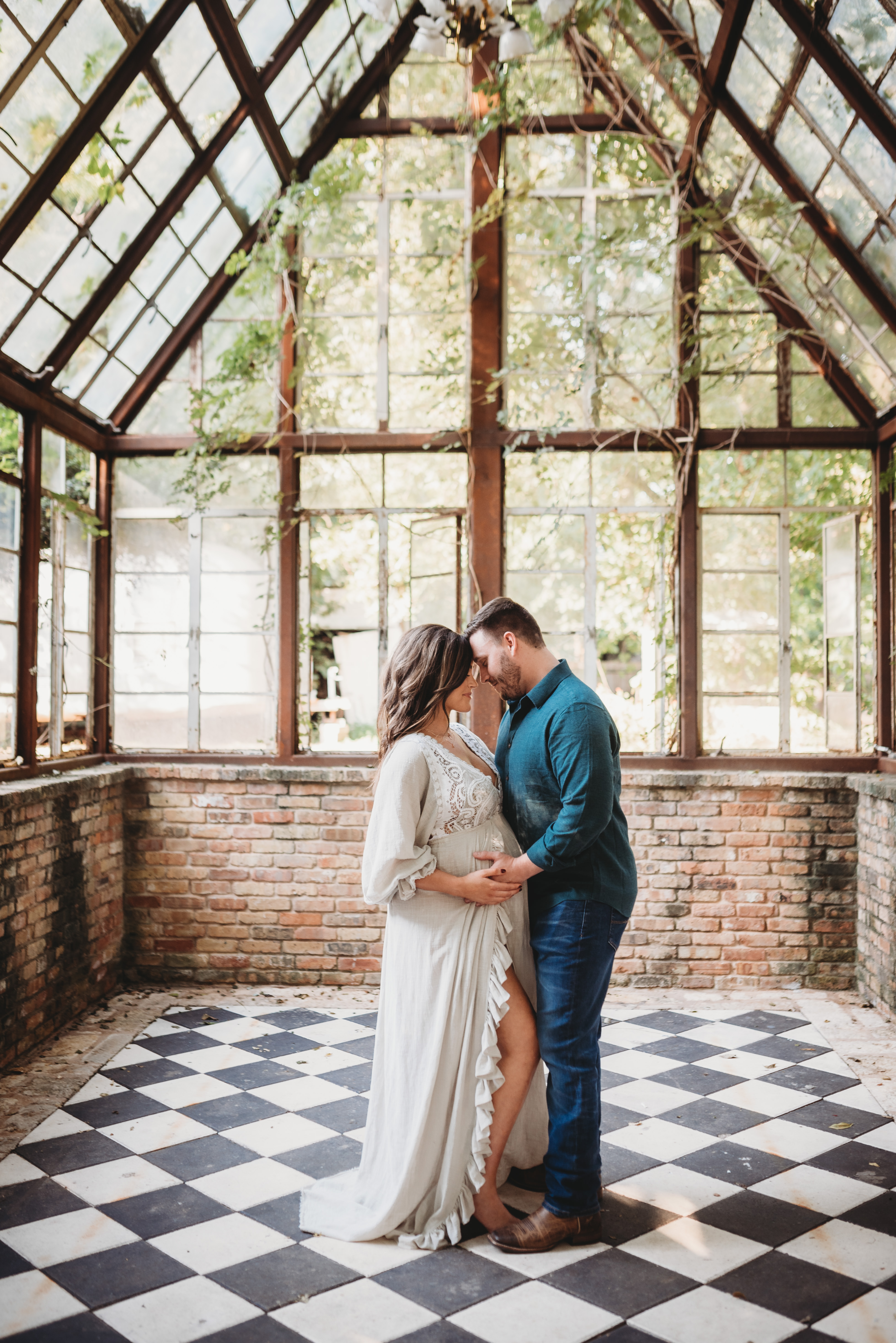 Natalie’s Austin Texas maternity session took place at one of my absolute favorite venue locations! The Sekrit Theatre in Austin is such an epic spot for any kind of photography session, but especially for mommas to be. Natalie had her maternity session in October of 2020, and even in the fall we were dealing with some major heat. On top of the Texas heat, we also had a ton of mosquitoes hanging out at the session as well. Despite these factors, we just kept shooting forever because this location was just so gorgeous and had so many different options available. I cannot get enough of the checkerboard floors, floor to ceiling windows and vibes wrapped up and down the A-frame building. Even outside of the main structure at this location, there are even more fun spots to use on the property! We liked the looks of the airstream and used that as a back drop for some of their images during this Austin Texas maternity session.